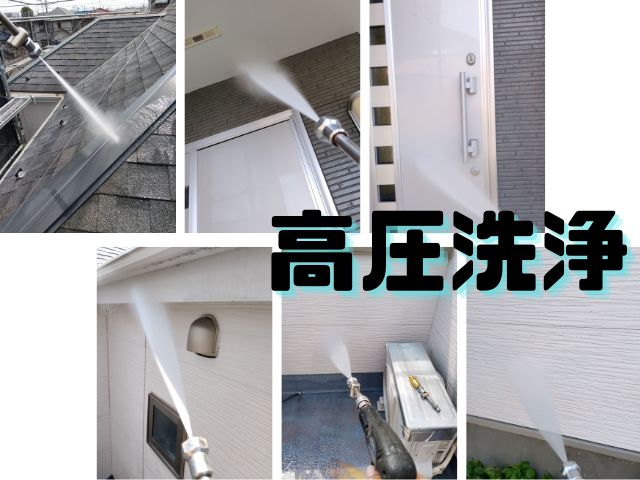 高圧洗浄にて汚れ苔等洗い落とします。 |