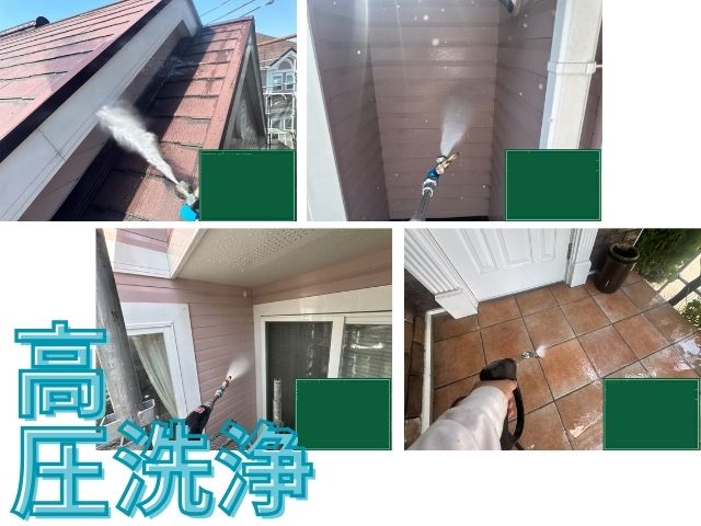 高圧洗浄にて汚れ苔等洗い落とします。 |