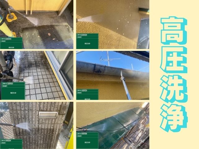 高圧洗浄にて汚れ苔等洗い落とします。 |