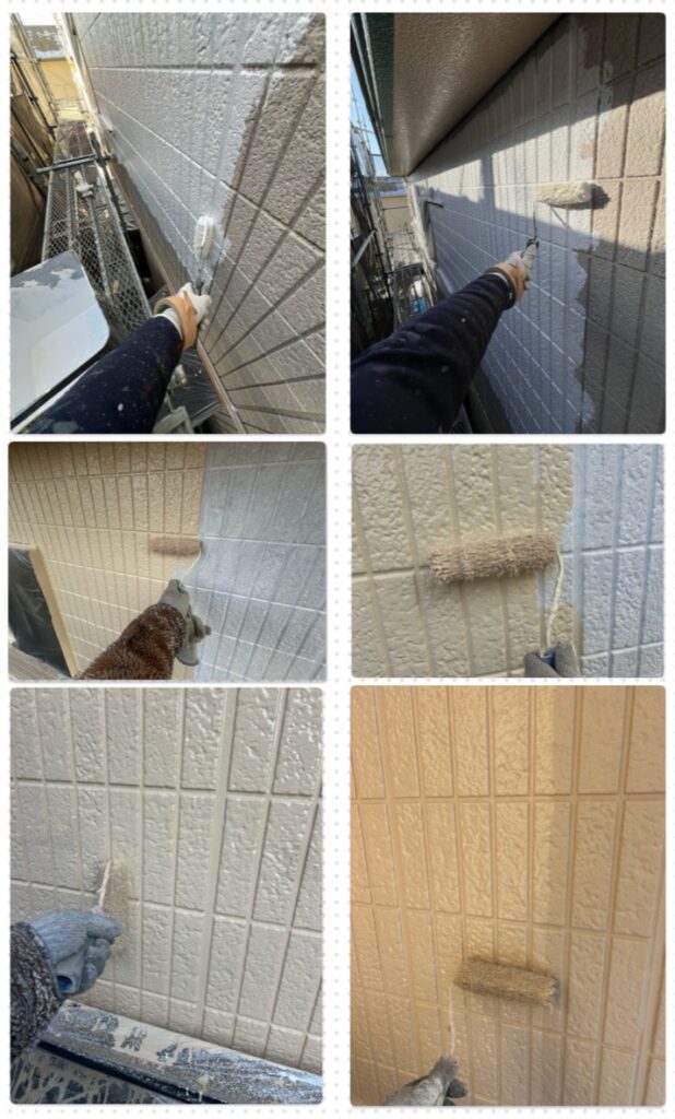 下地処理後、専用下塗りを塗布し仕上げ作業を行います。