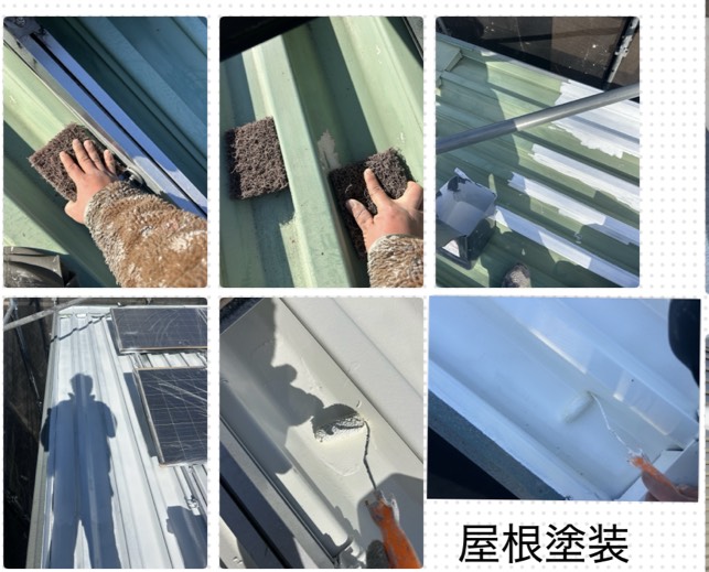 今回のお客様は、折板屋根になりますので屋根全体の下地処理を行います。